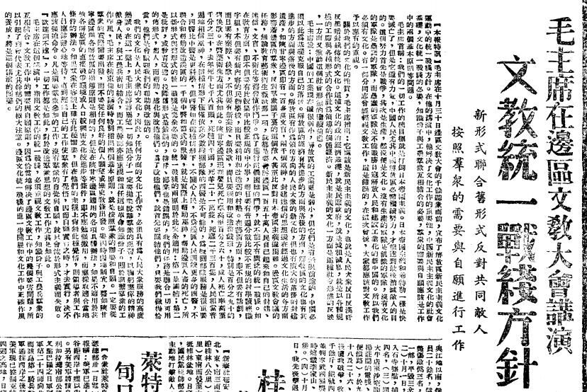 摘自《解放日报》中华民国三十三年十一月一日第一版