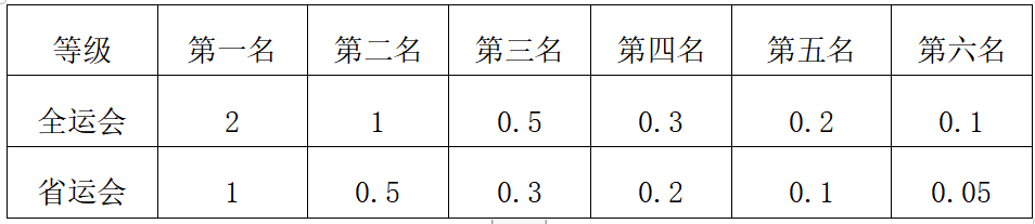 (4)员工获全国老员工运动会、省级老员工运动会前6名等,加分标准如下: