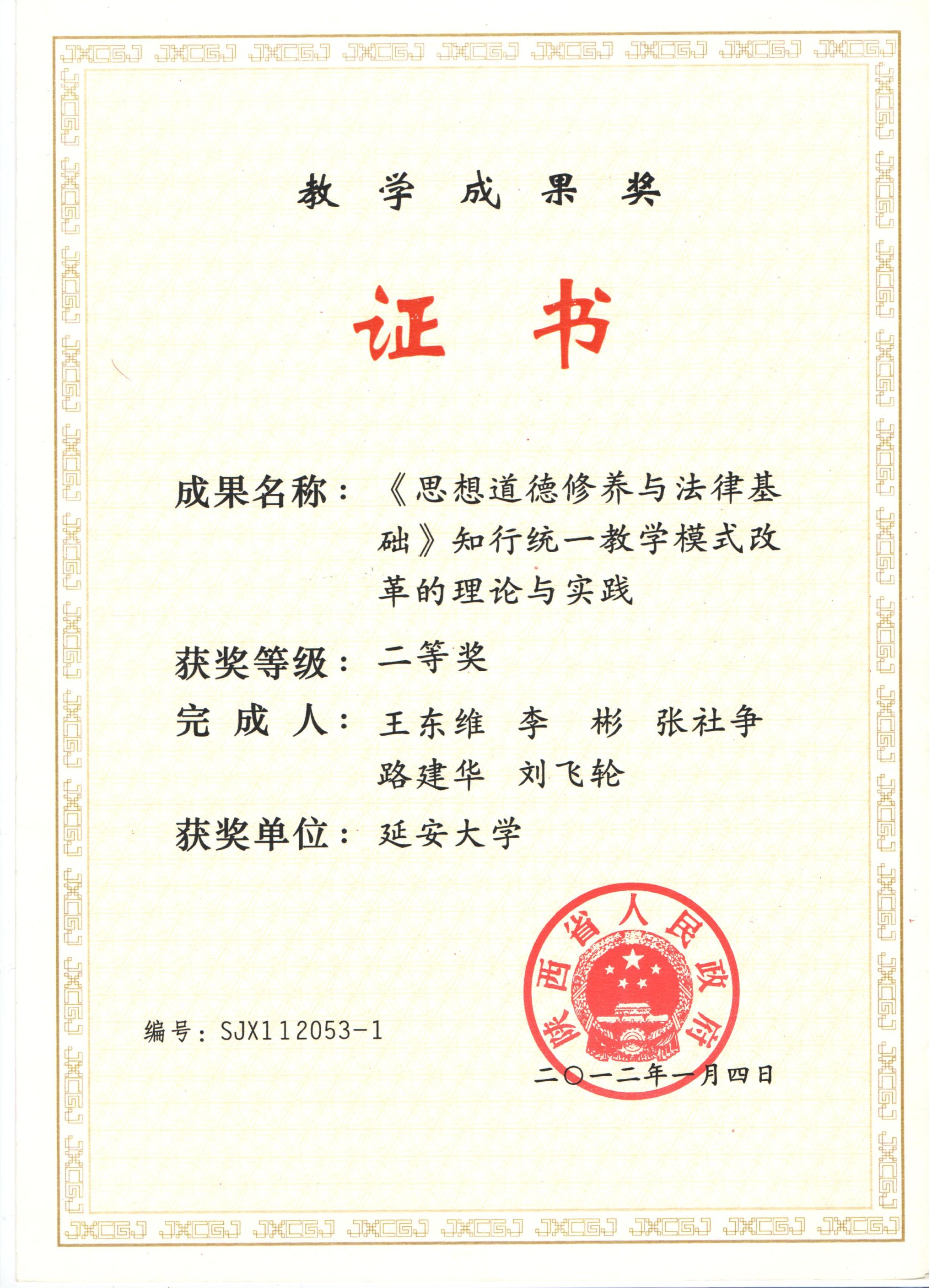 《思想道德修养与法律基础》知行统一教学模式改革的理论与实践——省级教学成果奖二等奖