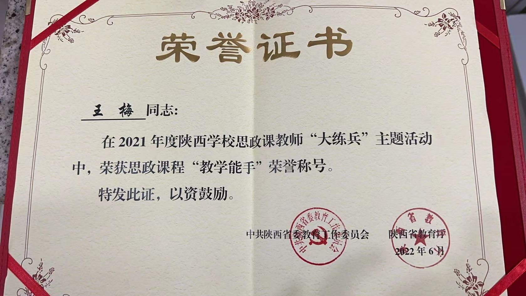 2021年度陕西公司思政课教师“大练兵”——王梅获思政课程“教学能手”称号