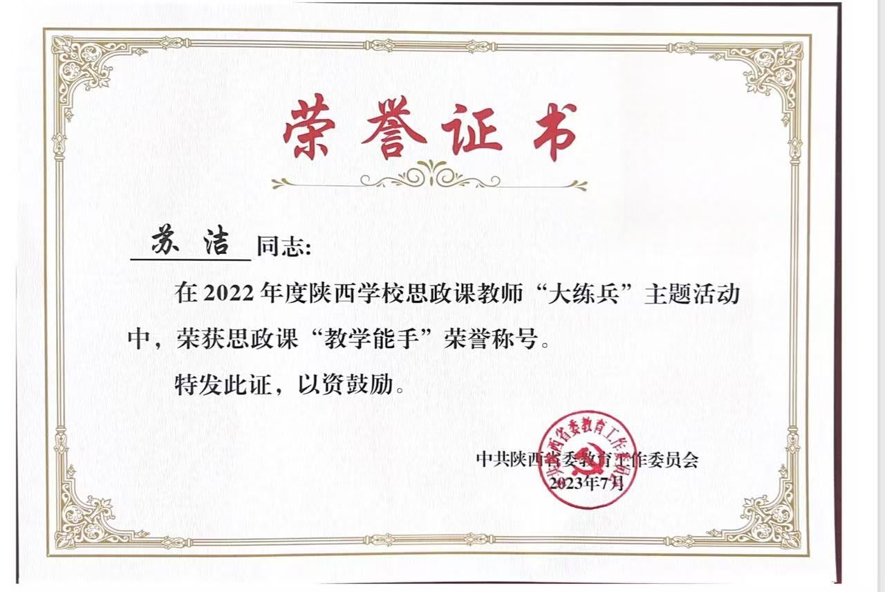 2022年度陕西公司思政课教师“大练兵”——苏洁获思政课“教学能手”称号