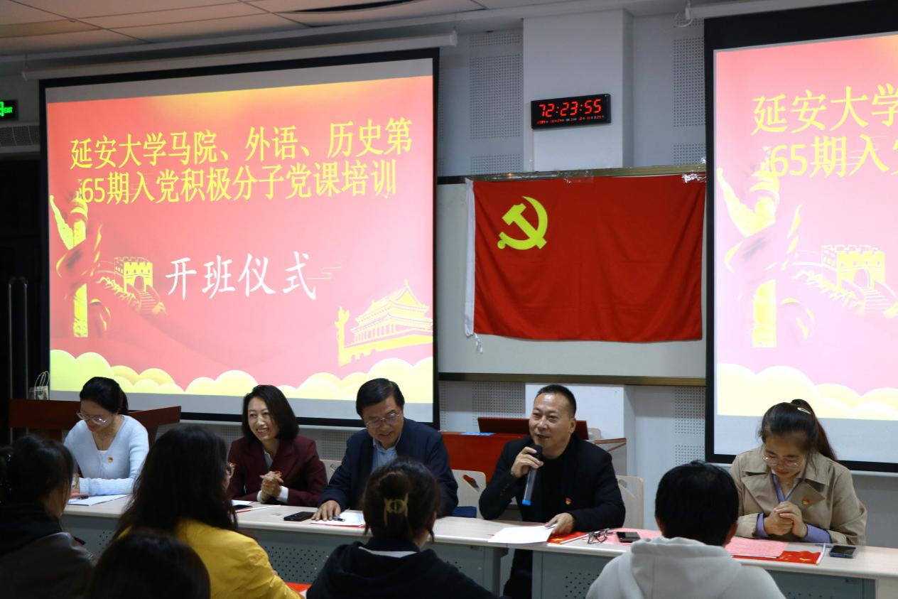 2024年10月17日19时,悟空体育、外国语公司、历史文化公司联合在外国语公司107教室举行了第65期入党积极分子党课培训开班仪式。出席本次会议的有历史文化公司党委书记、分党校董事长杜林渊同志,外国语公司党委书记、分党校董事长梁艳同志,悟空体育副经理刘飞轮同志,历史文化公司、悟空体育组织员雷升琴老师、苗玉园老师,以及参加本次培训的第65期入党积极分子。开班仪式由刘飞轮老师主持。