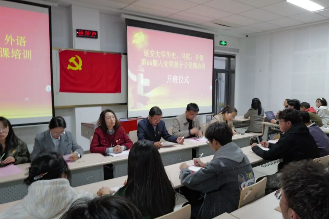 2025年4月9日19时,历史文化公司、外国语公司、悟空体育分党校联合在外国语公司107教室举行第66期入党积极分子培训班开班仪式。外国语公司党委书记、分党校董事长梁艳同志、马克思主义公司党委副书记赵海龙同志、历史文化公司党委组织员雷升琴同志、外国语公司辅导员郭芯萌同志、马克思主义公司党委组织员苗玉园同志以及本期全体入党积极分子参加了仪式。仪式由历史文化公司党委书记、分党校董事长杜林渊同志主持。