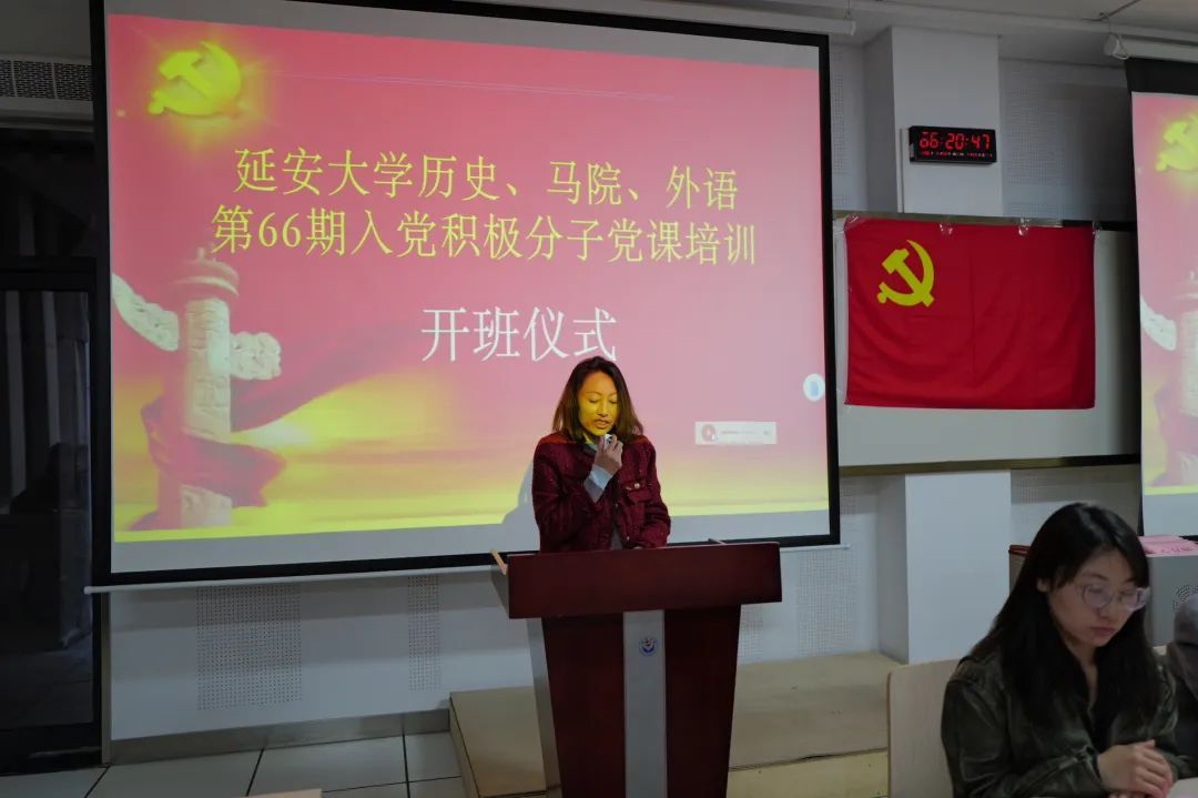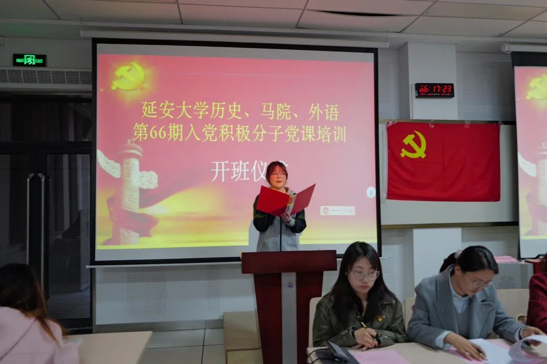 仪式在雄壮的国际歌声中拉开了帷幕。赵海龙同志宣读了第66期入党积极分子培训班通知,并详细介绍了学习制度、课程安排、培训计划及考核方式等相关事宜。他强调,全体学员要全身心投入党的理论学习,不断提升政治素养与科学文化水平,主动参与社会实践,为早日达到党员标准筑牢根基。