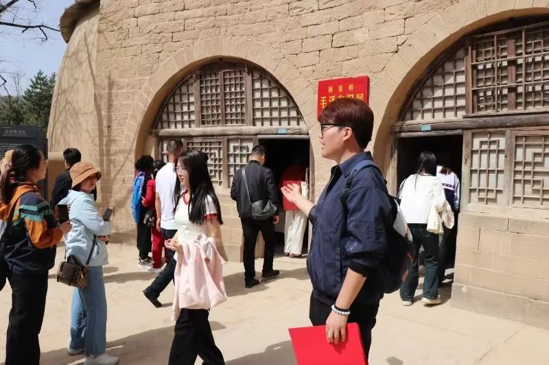在理论学习与互动交流后,大家依次参观了毛泽东、朱德、周恩来、刘少奇等伟人旧居。简朴的窑洞、陈旧的家具,无不彰显着老一辈革命家艰苦奋斗、勤俭节约的生活作风。在毛泽东旧居前,代育强同学以毛泽东送毛岸英参加劳动锻炼的史实为例,揭示了党的先进性与纯洁性的本质特征,彰显了共产党人严于律己的政治本色和知行统一的实践品格。