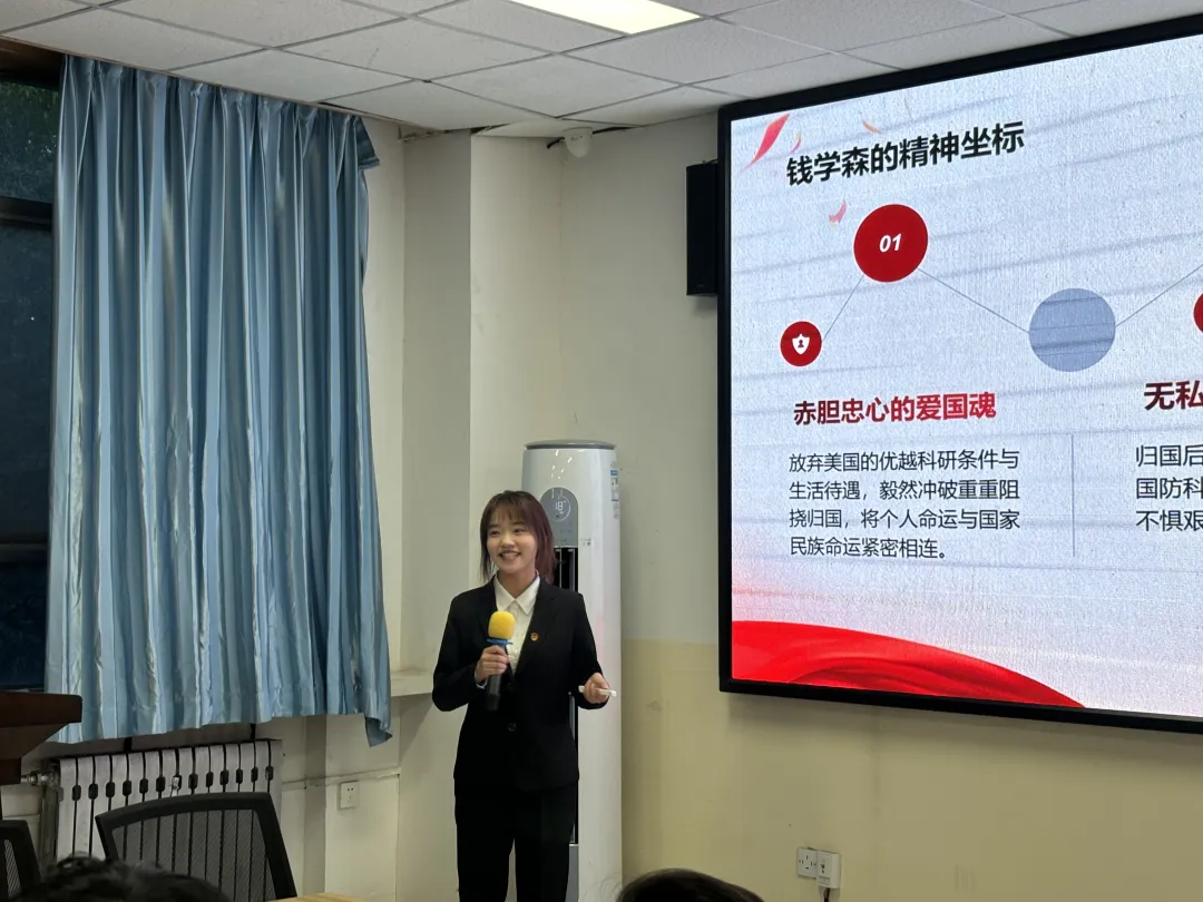 圣地青马宣讲团成员郭楷越、陈雨露、张锐欣、刘朝航、杨浩琪、肖柏杨等带来系列宣讲。从《为人民服务——张思德》中张思德的崇高精神到《为人民服务的科学践行者——钱学森》中钱学森的爱国情怀与科学贡献;从《我有一个梦》中袁隆平对“禾下乘凉梦”的执着,到《致敬时代楷模,传承黄大年精神》中黄大年生命最后一刻的坚守,宣讲团成员以真挚情感和生动讲述,带领师生重温感人故事,展现科学家们为国家和人民无私奉献、勇攀高峰的精神风貌,令在场同学深受鼓舞。