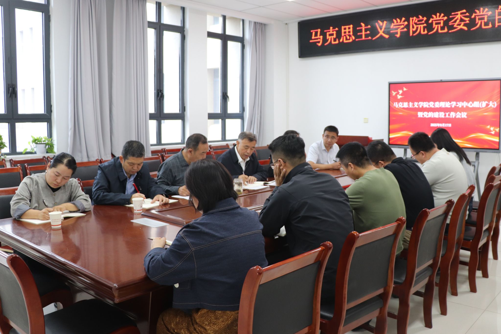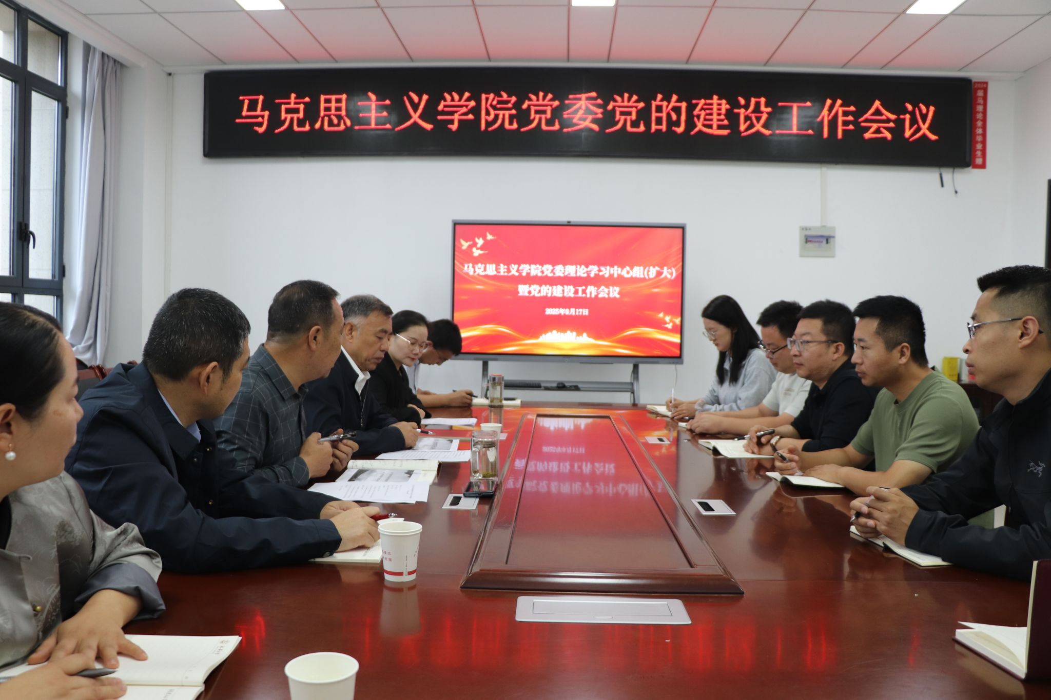 第一议题学习阶段,张彬书记传达了《中央宣传部、中央组织部关于认真组织学习〈习近平谈治国理政〉第五卷的通知》精神。经理高布权领学了中共中央政治局审议《中国共产党思想政治工作条例》。副经理臧爱绒就《习近平谈治国理政》第五卷的重点章节内容进行了导学。在分组讨论环节,与会人员围绕“弘扬伟大抗战精神”及深入学习习近平总书记关于纪念中国人民抗日战争暨世界反法西斯战争胜利80周年重要讲话精神,结合工作实际展开热烈交流,进一步强化了理论武装,增强了党性修养与纪律意识,提升了政治判断力、政治领悟力和政治执行力。