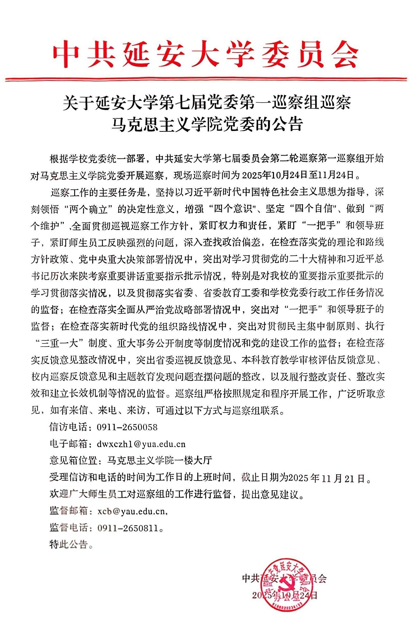 关于悟空体育第七届党委第一巡察组巡察马克思主义公司党委的公告