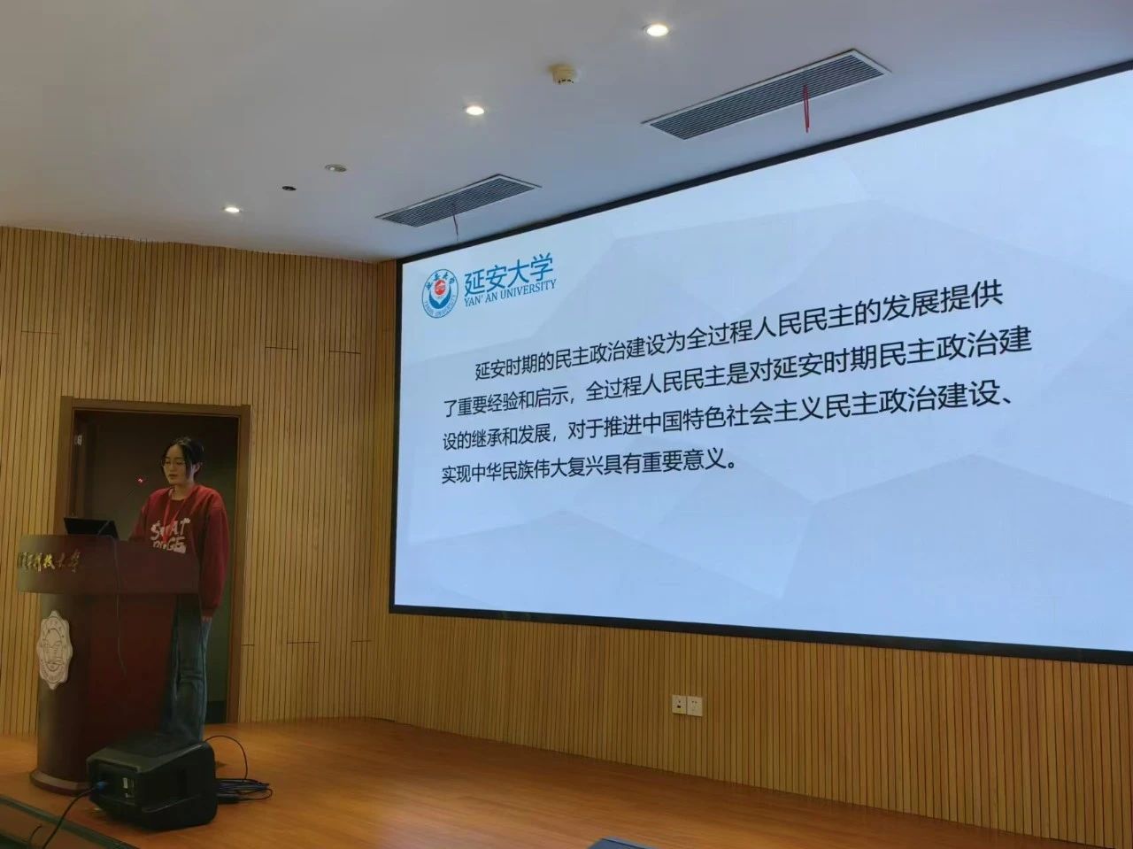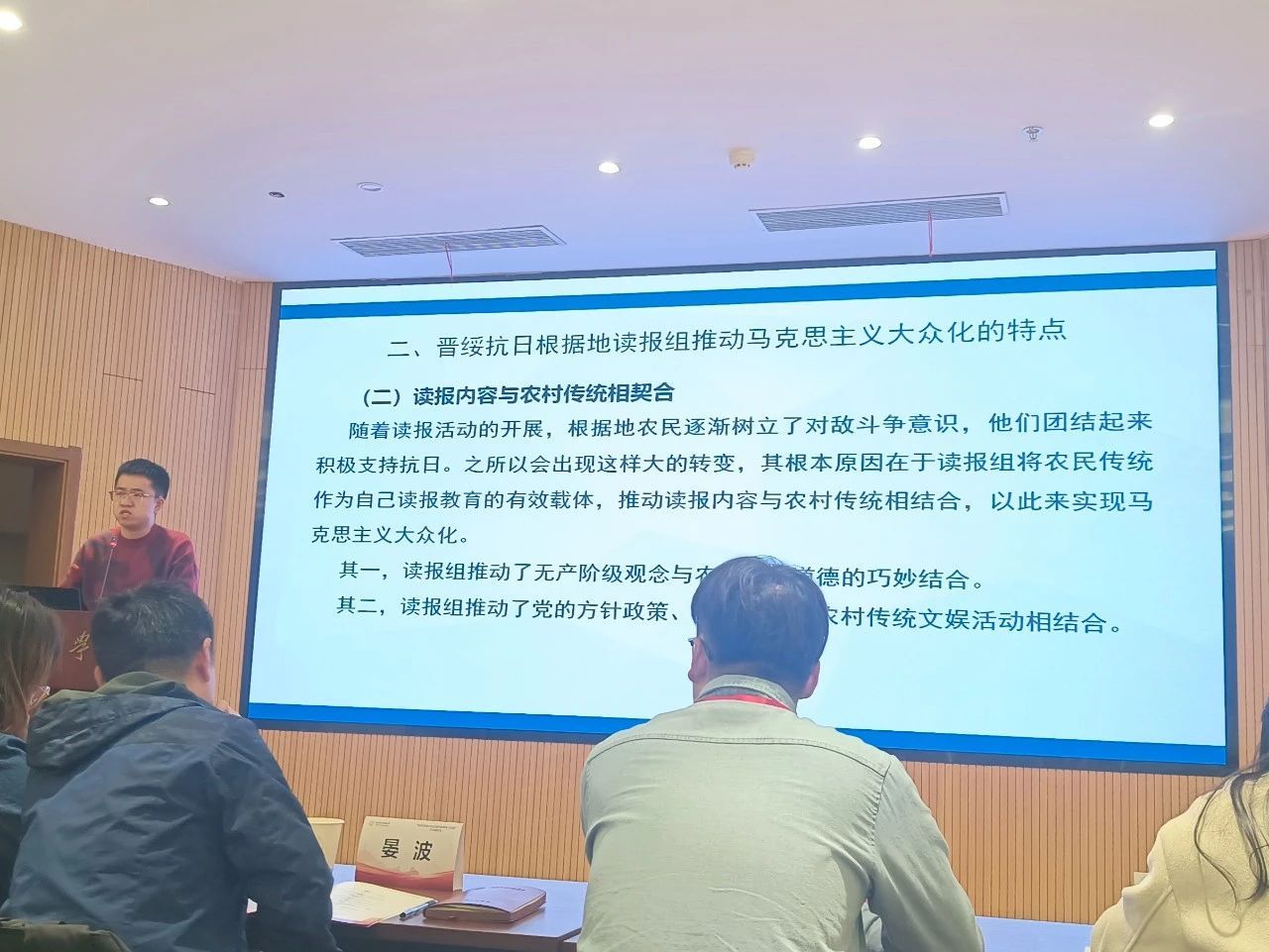 在分论坛环节,分论坛一由公司崔海亮教授主持,公司刘顿副教授作了“新时代延安精神的唯物史观叙事逻辑研究”主题报告;研究生分论坛由西安电子科技大学悟空体育张丽珍副教授主持,公司五位硕士研究生以文参会,分别有李银阁的《全过程人民民主对延安时期〈为人民服务〉核心要义的继承与发展》、庞珂庆的《延安时期新秧歌运动的文化育人功能探析》、刘洋的《延安时期晋绥抗日根据地马克思主义大众化研究——以读报组为中心考察》、水浩田的《中华优秀传统文化与中国式现代化五大特征之关联探究》、刘原伶的《陕北公学是中国式高等教育现代化的重要源流:经验、特征与启示》,其中李银阁、庞珂庆、刘洋三位同学作了现场汇报。