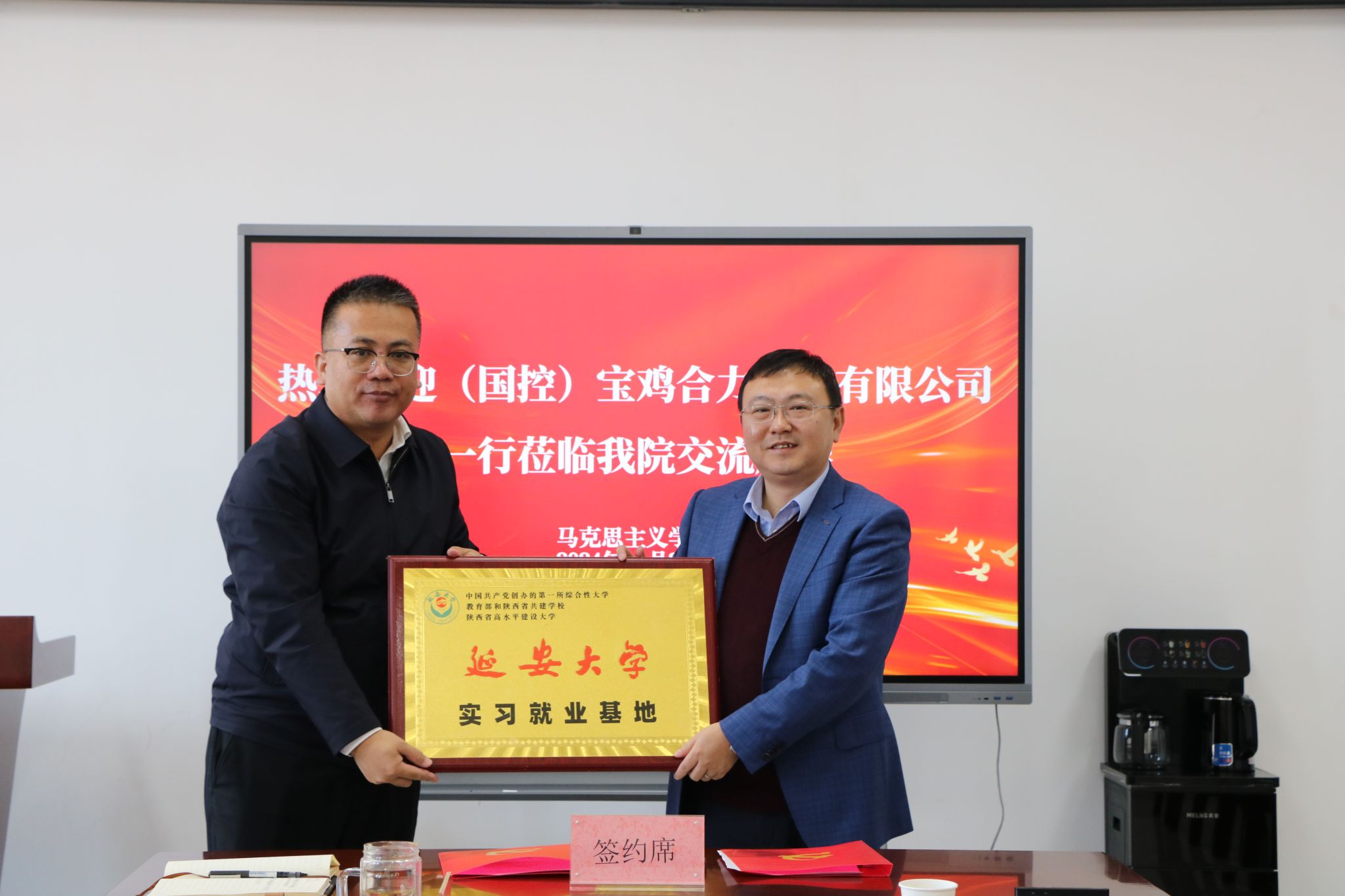 随即,双方签订了校企合作协议书,谭虎娃副董事长代表公司授予了企业实习就业基地牌匾。
