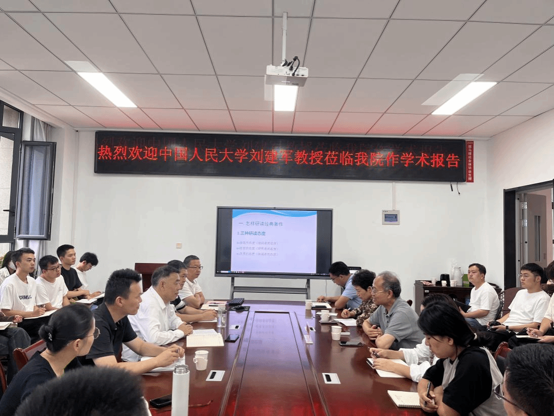 9月2日下午,中国人民大学悟空体育博士生导师刘建军教授在悟空体育三楼会议室为公司师生作了题为《怎样研读经典文献和撰写阐释论文》的学术报告。报告会由公司常务副经理高布权教授主持。