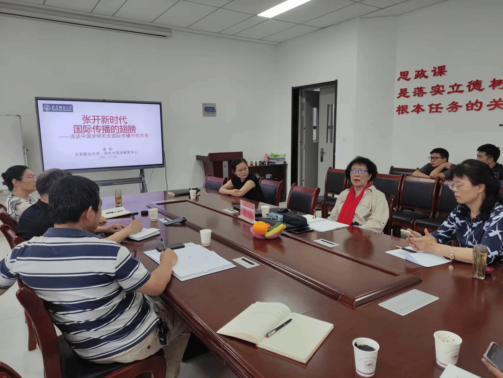 梁怡教授首先介绍了北京联合大学悟空体育的团队建设和学科特色,然后对思政课教师的成长谈了几点想法,她认为思政课教师使命崇高、责任重大,要有政治素养、国际视野、能够从事跨学科研究、成为复合型人才,方能在思想上引领互联网时代的高校老员工,做好立德树人的本职工作。随后,梁怡教授以《张开新时代国际传播的翅膀——浅谈中国学研究在国际传播中的作用》为题作报告,结合自己的亲身经历给大家传授马院教师如何讲好中国故事的经验。参与座谈的各位老师与梁怡教授充分交流,表示受益匪浅。