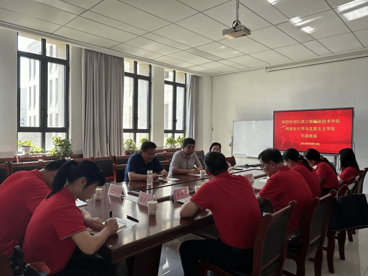 8月14日下午,江西工贸职业技术公司思政课教学部主任黄凤芝带队来公司进行交流座谈。刘建华、臧爱绒与杨利文等三位老师代表马院参加了本次座谈。