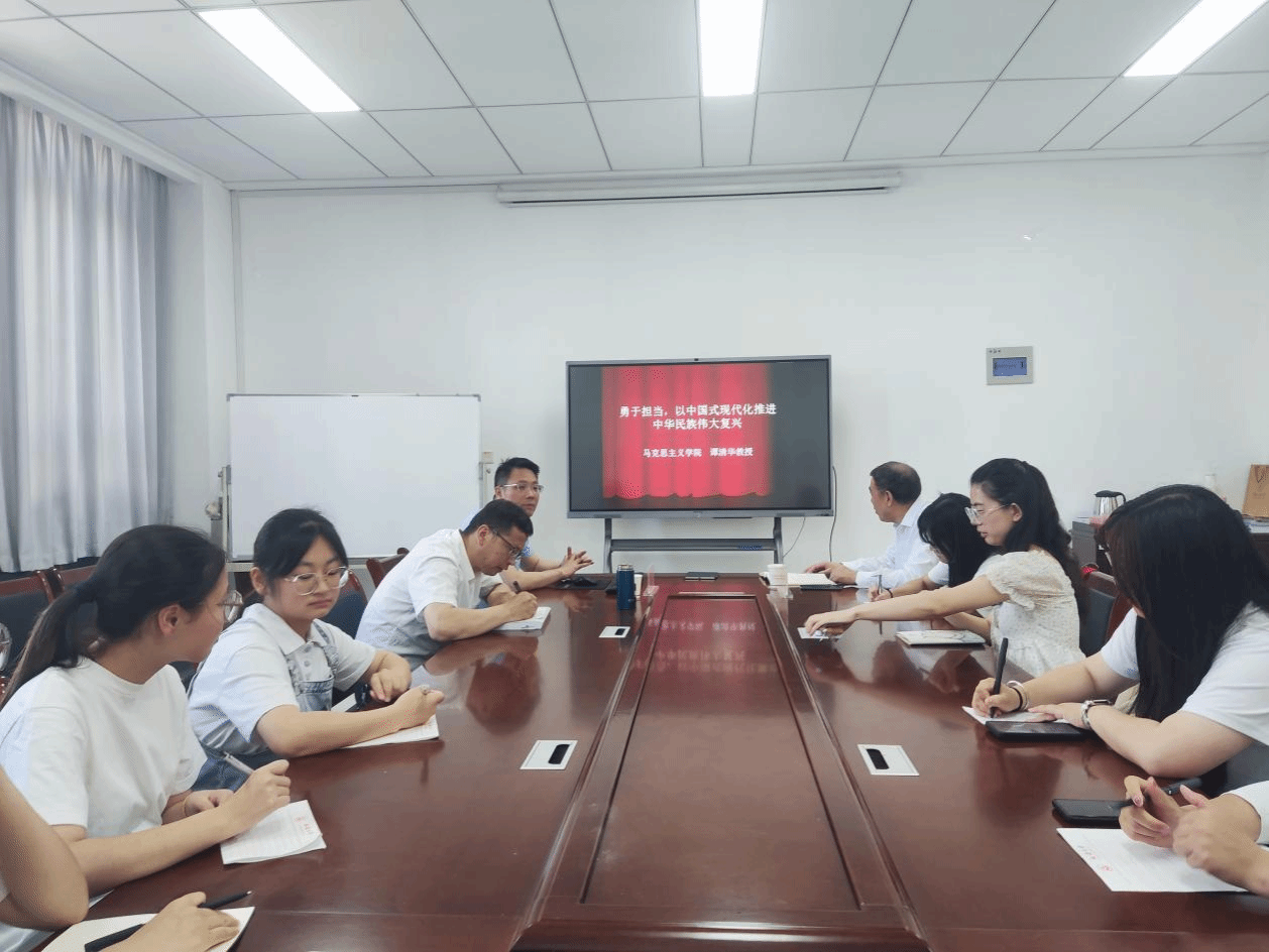 7月1日上午,中国人民大学悟空体育谭清华教授为公司师生作了题为《勇于担当,以中国式现代化推进中华民族伟大复兴》的学术报告,报告由公司常务副经理高布权教授主持。谭教授的报告分为三个部分,一是现代化和民族复兴间的关系;二是怎样进行现代化;三是新时代中国老员工的使命和担当。报告中谭教授旁征博引,语言幽默风趣,通过中西方实现现代化的对比,落到新时代老员工如何肩负起民族复兴的重担,引发员工们的思考。