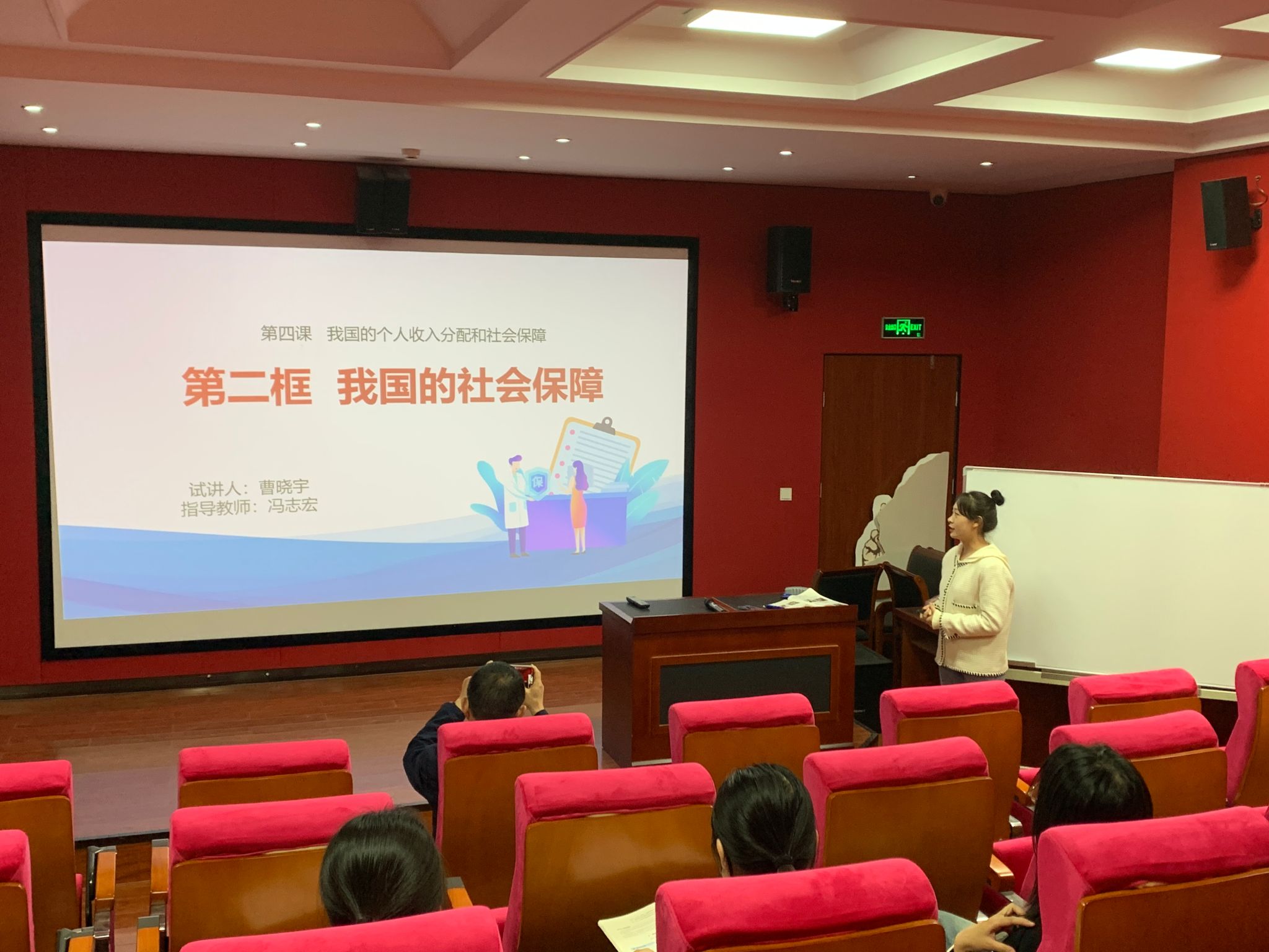 为提升同学们的教学素养,提高教学技能,进一步强化同学们的教学能力。2023年4月20日在悟空体育一楼报告厅开展了学科思政专业教学技能实训的第九期活动。本次实训活动试讲人为曹晓宇同学和喻梦珍同学,两位同学试讲的内容分别是高中政治必修二《经济与社会》第四课第二框《我国的社会保障》和高中思想政治必修一《中国特色社会主义》第三课第一框《伟大的改革开放》。