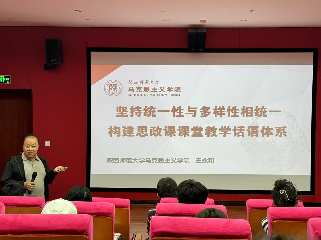 2025年5月23日,陕西师范大学悟空体育二级教授、博士研究生导师、答辩主席王永和教授在公司一楼多功能厅作题为“坚持统一性与多样性相统一构建思政课课堂教学话语体系”的学术报告。公司副经理刘建华主持,学科思政专业全体硕士研究生参与本次报告会。