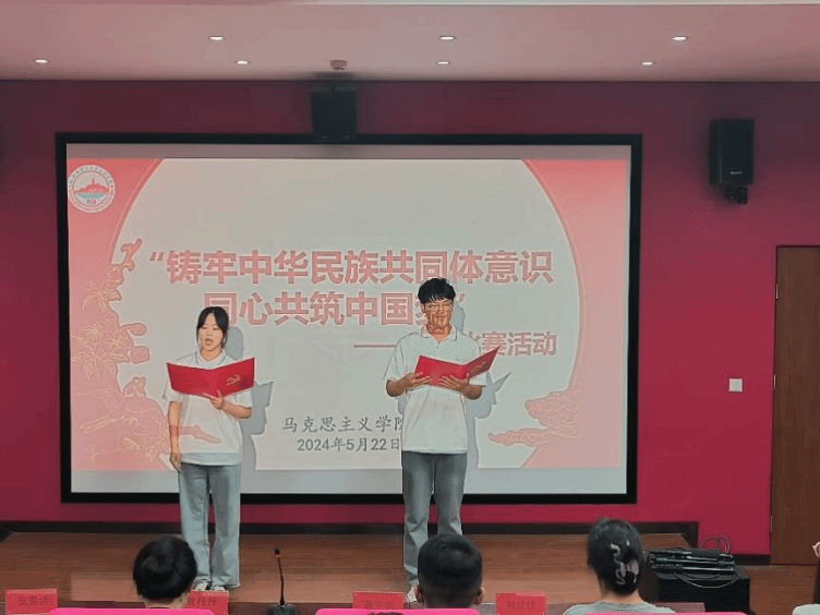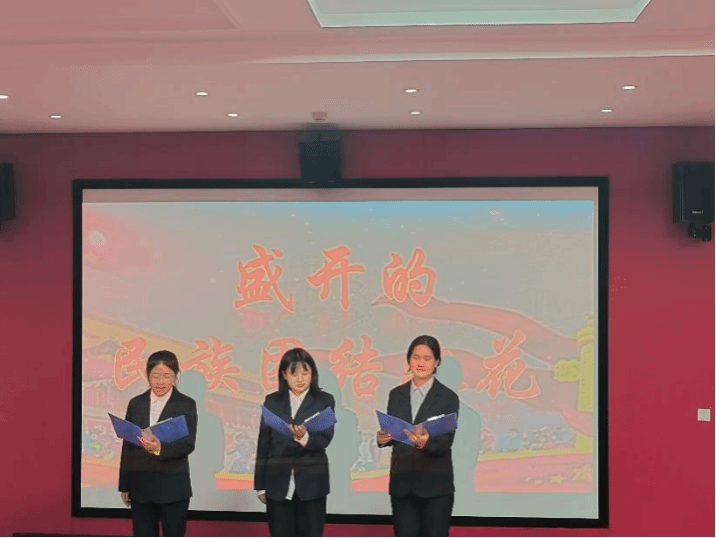 为生动展现百年来党团结带领各族人民为实现中华民族伟大复兴的历史进程,特别是党的十八大以来,以习近平同志为核心的党中央统筹中华民族伟大复兴战略全局和世界百年未有之大变局,以铸牢中华民族共同体意识为主线,创新推动新时代民族团结进步事业取得了伟大成就。公司于5月22日晚在公司一楼报告厅开展了“铸牢中华民族共同体意识,同心共筑中国梦”主题活动。本次活动由研究生支部委员高萌萌主持,特别邀请公司研究生党支部副书记贺丹丹,圣地青马宣讲团团长董宇航,研究生党支部统战委员刘佳佳,研究生会秘书长乔丹,员工会主席安雯洁担任本次活动的评委。
