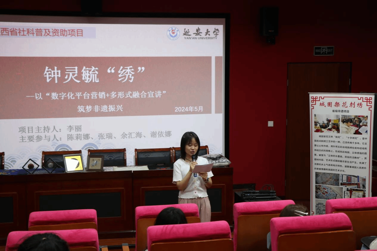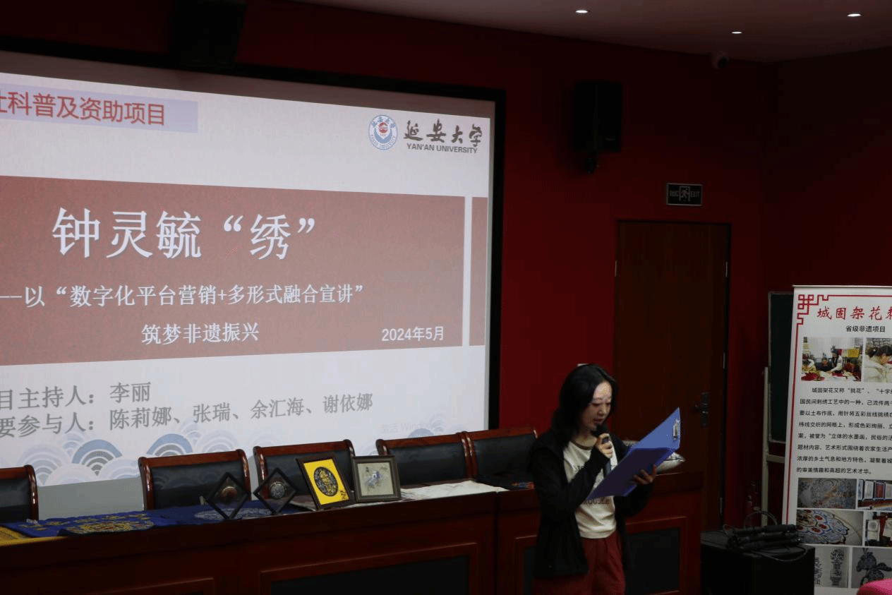 城固架花刺绣,作为陕西省非物质文化遗产之一,拥有悠久的历史传承和独特的艺术特色。它以精细的绣工、丰富的图案和深厚的文化内涵,在民间艺术中占据重要地位。然而,随着现代社会的发展,这一传统技艺面临着传承乏力的挑战。为了让广大师生在感知、体验中了解城固架花刺绣的文化底蕴与魅力,深入强化同学们对传统文化的认知,公司于2024年5月19日19:00在公司报告厅举行“城固绣韵,校园传承”非遗进校园活动,活动由孙瑜垚同学主持。