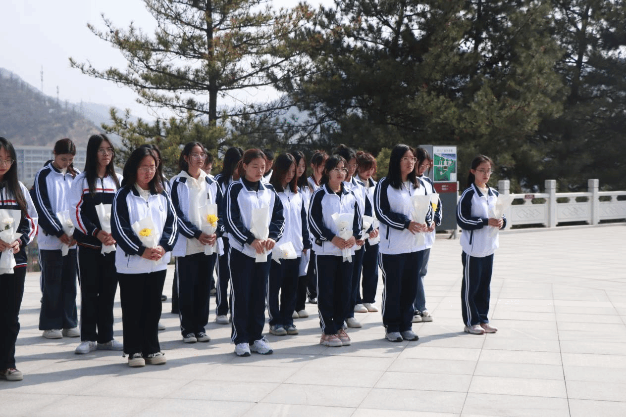 清明时节祭哀思,手捧黄菊静默立。全体同学手捧菊花,排好队列,依次走近烈士纪念碑,绕行瞻仰、献上鲜花,缅怀英烈们不畏艰难、奋勇前行的精神,从中汲取奋进力量。朵朵菊花寄托着深深的哀思,也饱含着同学们的敬畏之情。