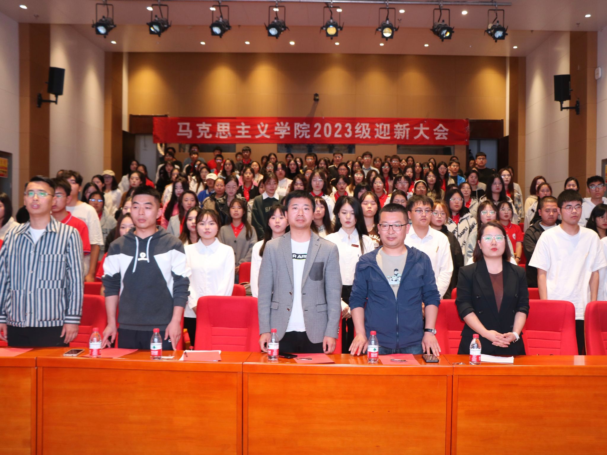 在校生代表马玉(本科)、董宇航(硕士)分别分享了在马院求学的收获与感悟,勉励新生胸怀理想、博学明辨、知行合一。新生代表张旭(本科)、刘洋河(硕士)代表全体新生做出庄严承诺,将牢记自身责任与使命,将马院人追求真理的精神化作前进的动力,勇于创新,敢于质疑,不断提高自身综合素质,在马院的沃土上成长为对党和人民忠诚可靠、堪当时代重任的栋梁之才。