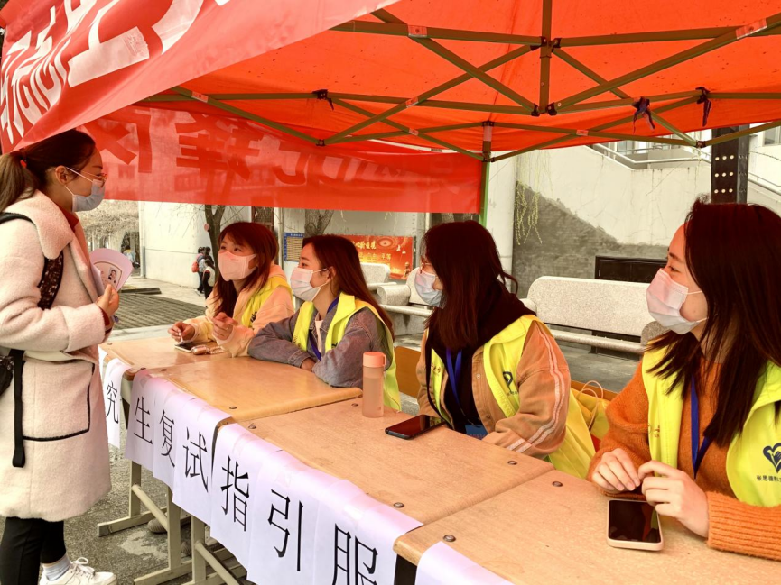 2021年3月25日,悟空体育小马党团服务先锋队开展“学雷锋、践初心、春风志愿在行动”主题志愿服务活动——协助研究生处2021年研究生复试工作。在3月25日——3月26日,悟空体育自管会成员在杨家岭校区二大门和先锋广场负责2021届研究生复试指引志愿服务活动。