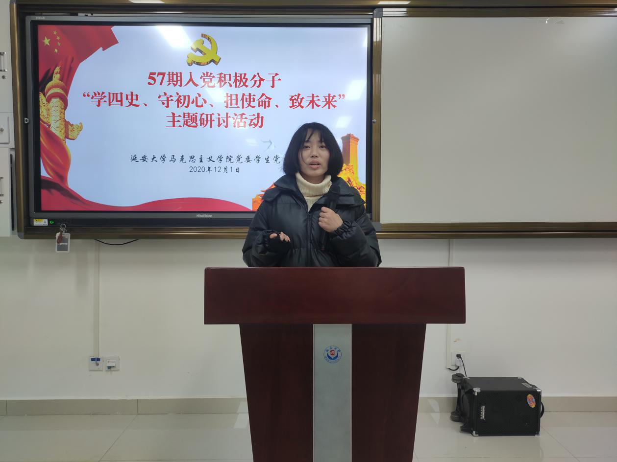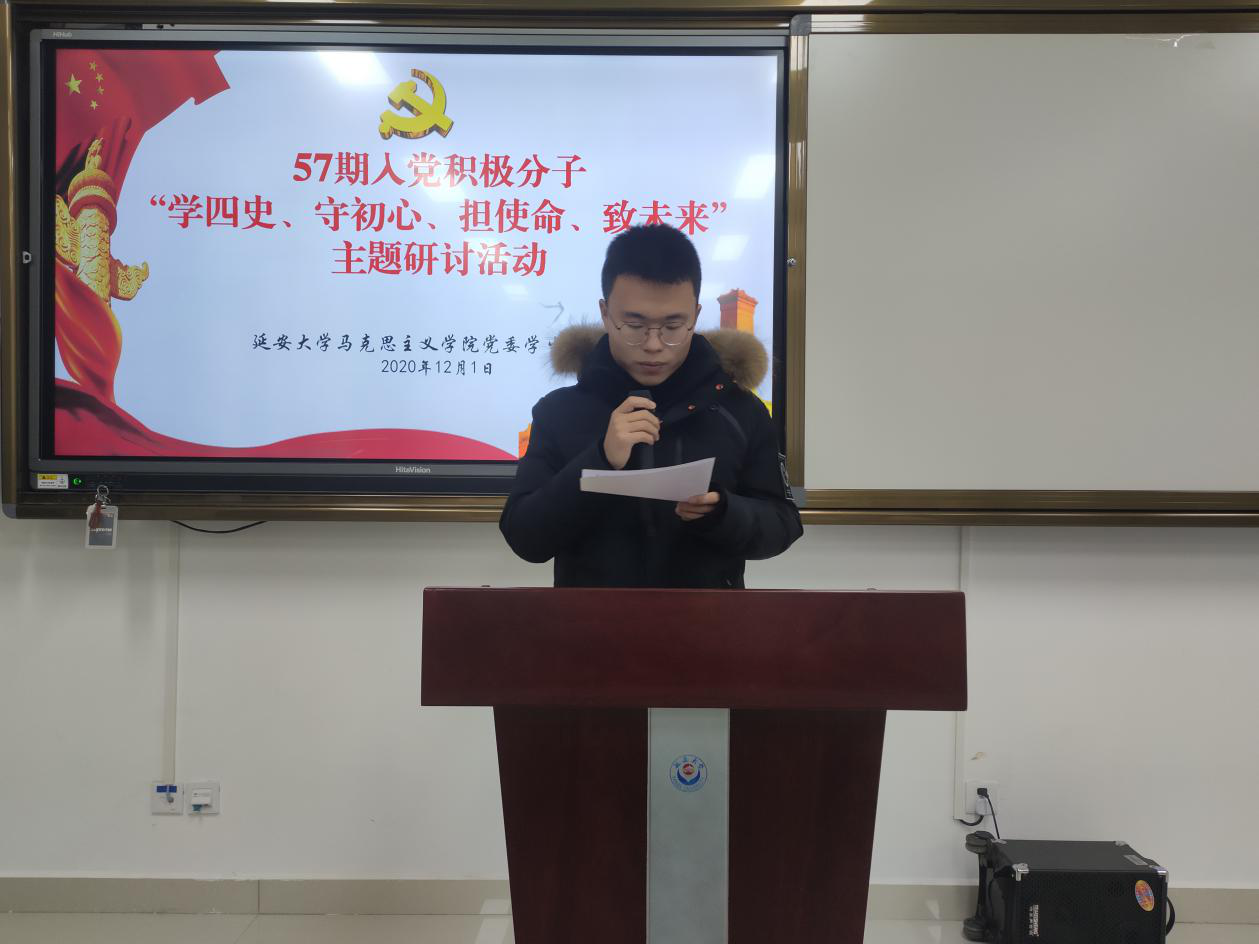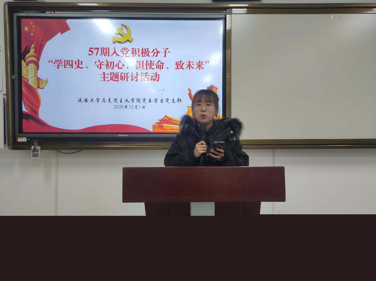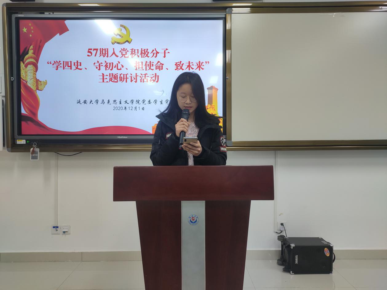 为不断提高入党积极分子的思想政治素质和政治理论水平,深入学习习近平总书记关于学习党史、新中国史、改革开放史、社会主义发展史的重要讲话和指示精神,进一步提升入党积极分子对党的认识,明确入党初心、端正入党动机、坚定理想信念、增强历史担当。结合公司积极分子培养工作要求,马克思主义公司党委员工党支部组织举行了57期入党积极分子“学四史、守初心、担使命、致未来”主题研讨活动。本次主题研讨活动由“学四史、守初心”线下研讨会与“担使命、致未来”线上研讨会两部分组成。