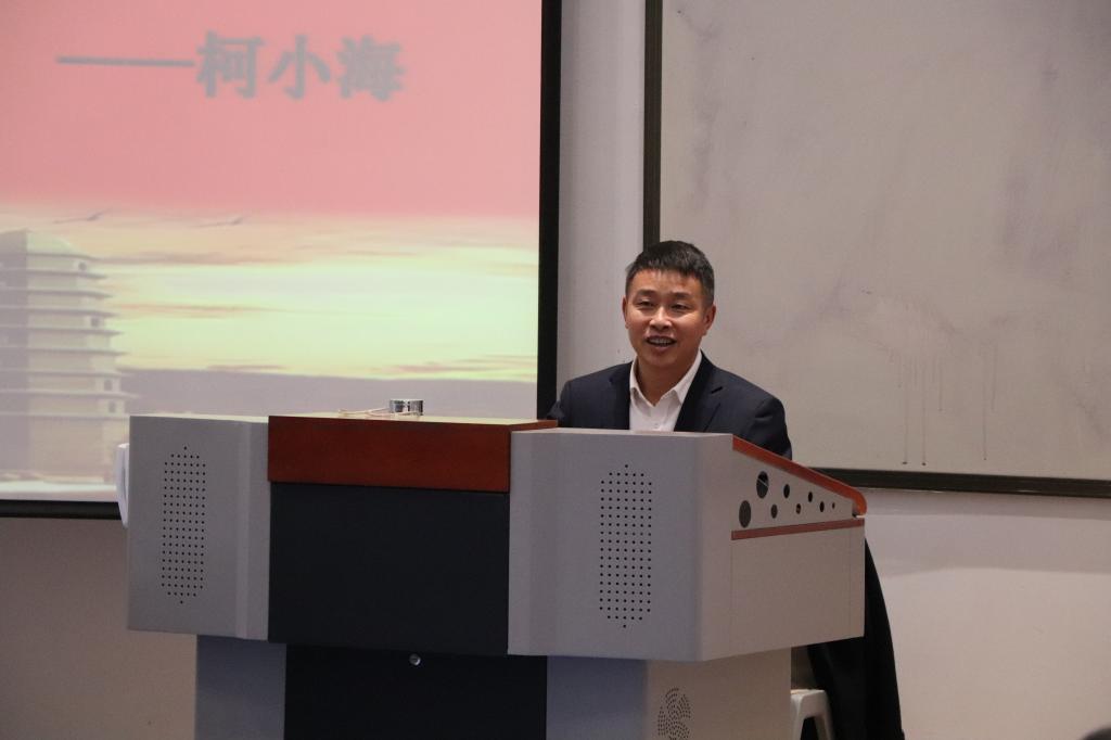 柯小海书记围绕“坚守初心,艰苦奋斗,当好群众脱贫致富的领路人”这一主题,结合自身经历,从谋划产业,当好群众致富的“领头羊”;拓宽思路,把好集体发展的“方向盘”;规范管理,守好管事“安全线”;为民解忧,做好群众的“知心人”四个方面为同学们讲述了作为一名基层共产党员如何为人民群众办实事、带领广大人民群众发家致富,共创美好生活。