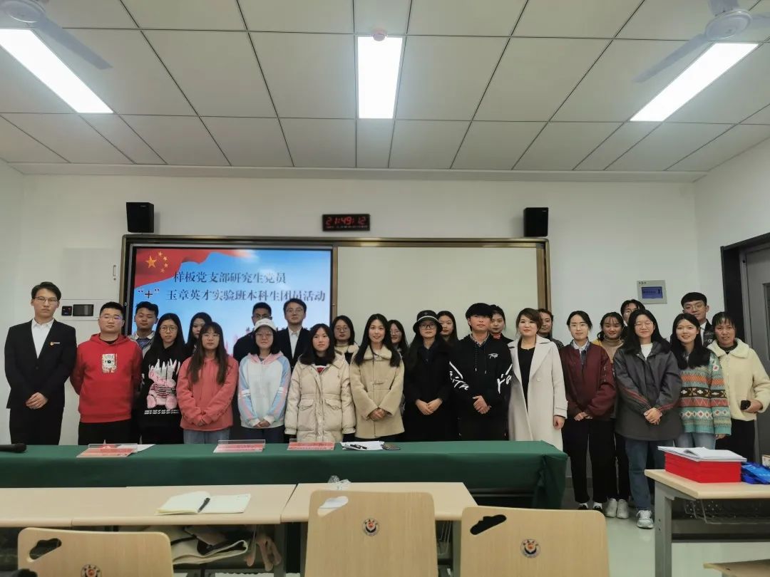 为进一步创新公司研究生样板党支部“老党员带积极分子”制度,发挥研究生党员的先锋模范带头作用,加强玉章英才实验班的班级建设,帮助玉章英才实验班同学尽快适应新的学习生活环境,进一步成长成才,马克思主义公司党委员工党支部于11月6日下午在公司202教室举行样板党支部研究生党员“+”玉章英才实验班本科生团员的结对子活动。参与本次活动的有公司党委副书记赵海龙老师、员工党支部书记闫莉莉老师、全体研究生党员以及玉章英才实验班的同学,活动由员工党支部副书记董阳主持。