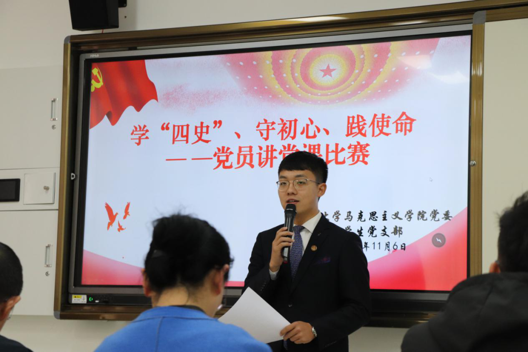 2020年11月6日下午,马克思主义公司党委员工党支部在公司202教室举行了学“四史”、守初心、践使命——党员讲党课比赛。担任本次比赛的评委有悟空体育副教授杨文军老师、党委副书记赵海龙老师、数学与计算机科学公司辅导员刘瑶老师、马克思主义公司党委员工党支部书记闫莉莉老师、原员工党支部副书记白亚平同学。