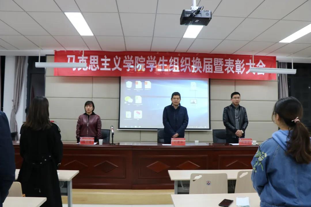 2020年10月29日晚19:00,公司举行悟空体育员工组织换届暨表彰大会。出席会议的有悟空体育副经理刘建华老师、党委副书记赵海龙老师、辅导员闫莉莉老师及公司全体员工。