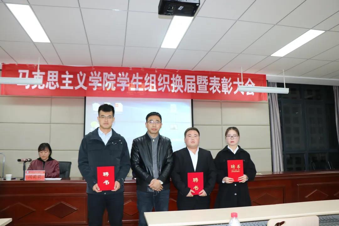 第四项,闫莉莉老师宣读公司新一届员工组织机构设置及其成员名单。马克思主义公司党委副书记赵海龙老师为公司新一届员工干部颁发聘书。
