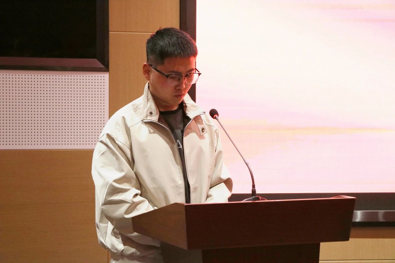 运动员代表24级学科思政张子豪发言。他代表全体运动员郑重承诺,将以最饱满的热情、最昂扬的斗志投入到训练与比赛中。比赛期间,严格遵守比赛规则,尊重对手、尊重裁判,全力以赴争取优异成绩,为公司争光添彩。张子豪同学的发言坚定有力,充满了青春的朝气与活力,展现出公司学子昂扬向上、勇于挑战的精神。