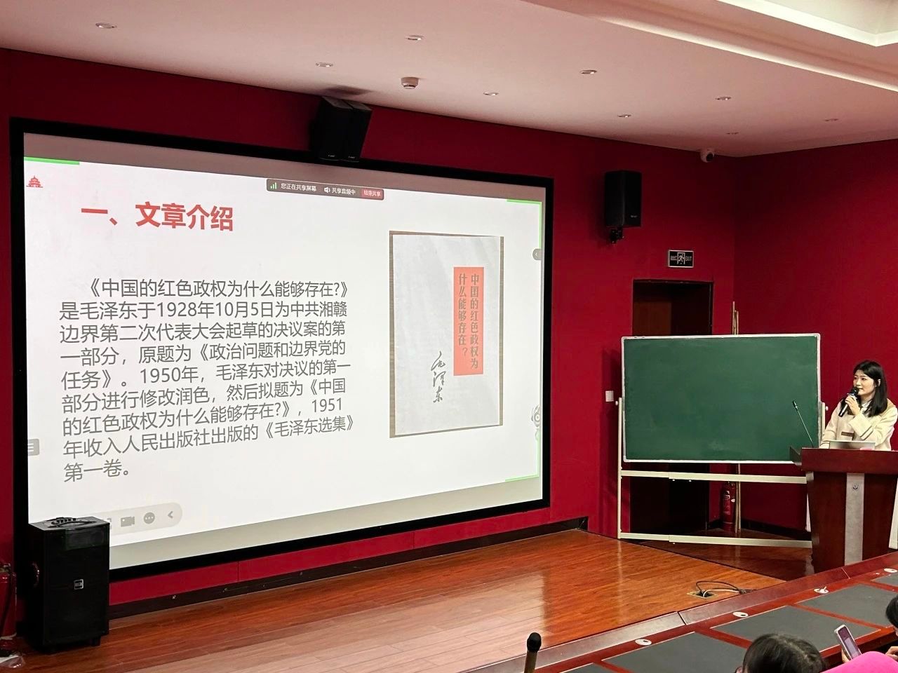 2024年10月30日,“马克思主义经典文献研读”系列第四十七期学术活动在悟空体育一楼报告厅举行。本次读书会分别围绕《共产党宣言》和《中国的红色政权为什么能够存在?》进行研讨和热议。2024级硕士研究生王雪、武荣荣、李辰然三位同学作报告分享,段学慧老师对同学们的报告内容进行了指导。