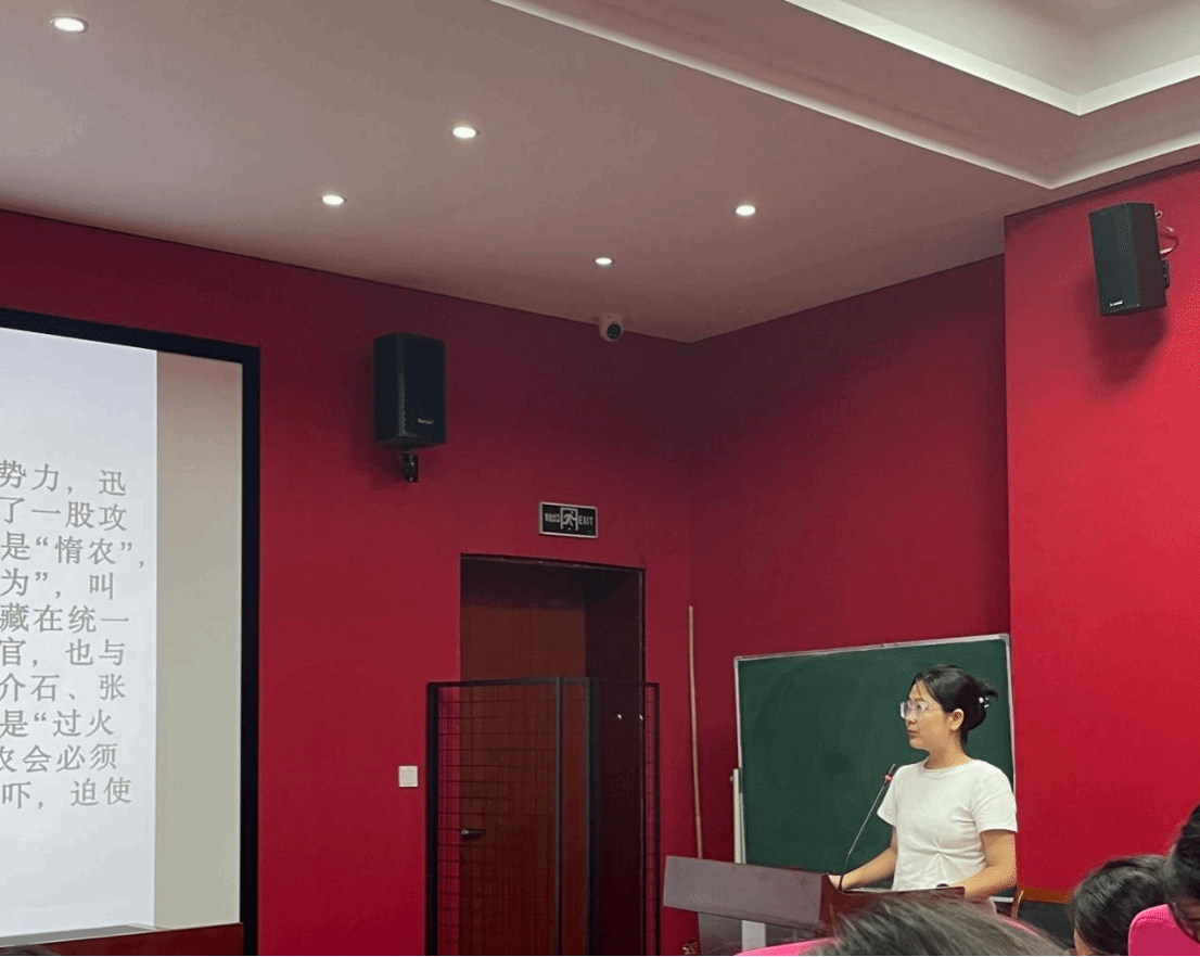 第三位导读人是田文雨同学,她分享的文章是《湖南农民运动考察报告》,随后从写作背景、文本内容和意义启示三方面展开分享。《考察报告》基于调查研究所得出的正确事实判断,对当时党内外对于农民革命斗争的责难给予了掷地有声的回复和反击。用事实驳斥了“糟得很”的错误论断和所谓“过分”“痞子运动”等错误言论,正确分析了农民各个阶级的政治态度,从而支持和引导农民积极投身于武装斗争和建立革命政权的运动之中。