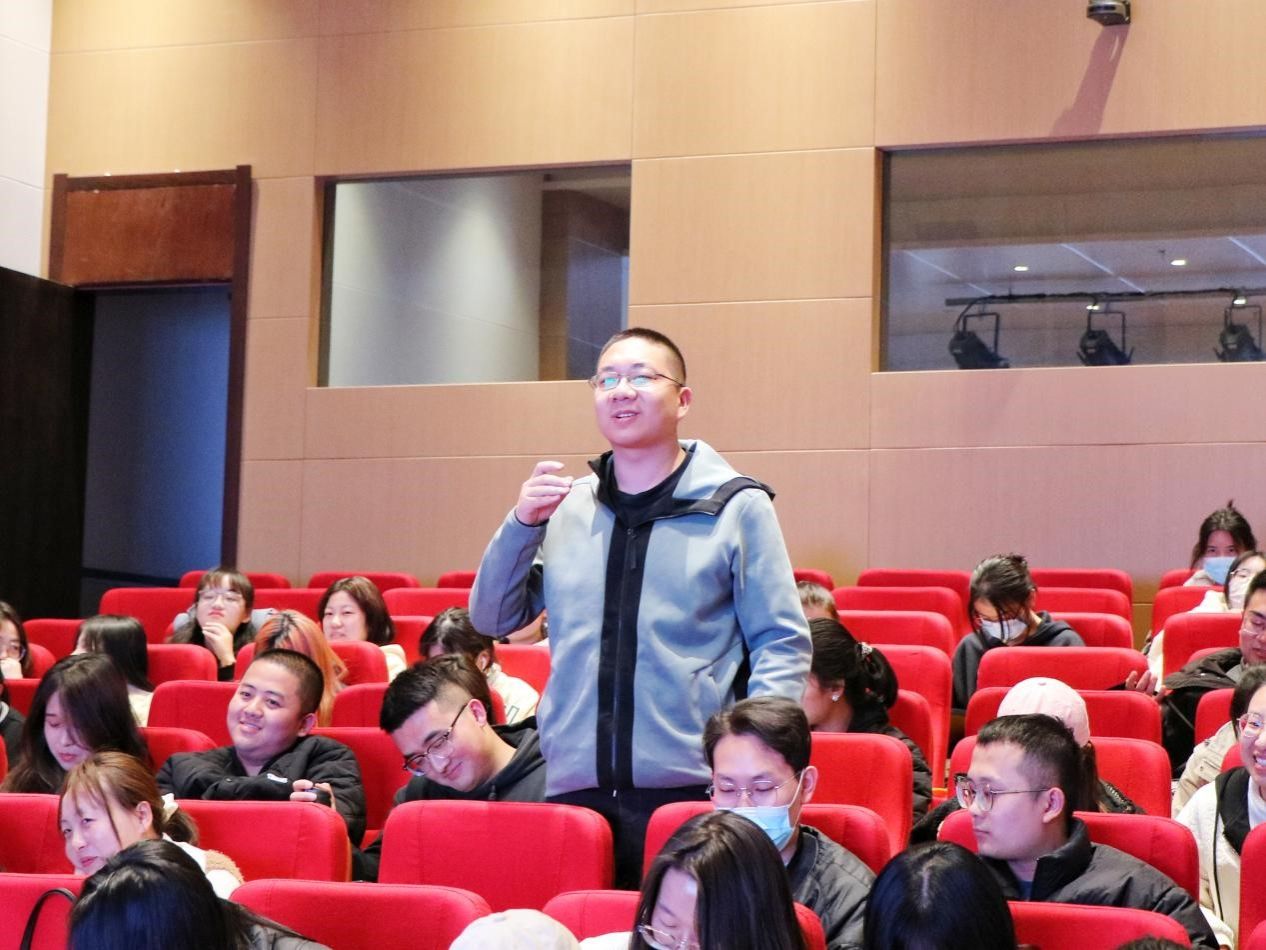 主题讲授结束后,郝儒杰副教授与在场师生进行了深入的交流和探讨,分享了读博期间的心得体会和写作经验。刘建华副经理作总结发言,勉励全体研究生要认真学习郝老师写作的经验与方法,要做到勤学、勤看、勤问和勤写,争当一名有学术追求的马院研究生。