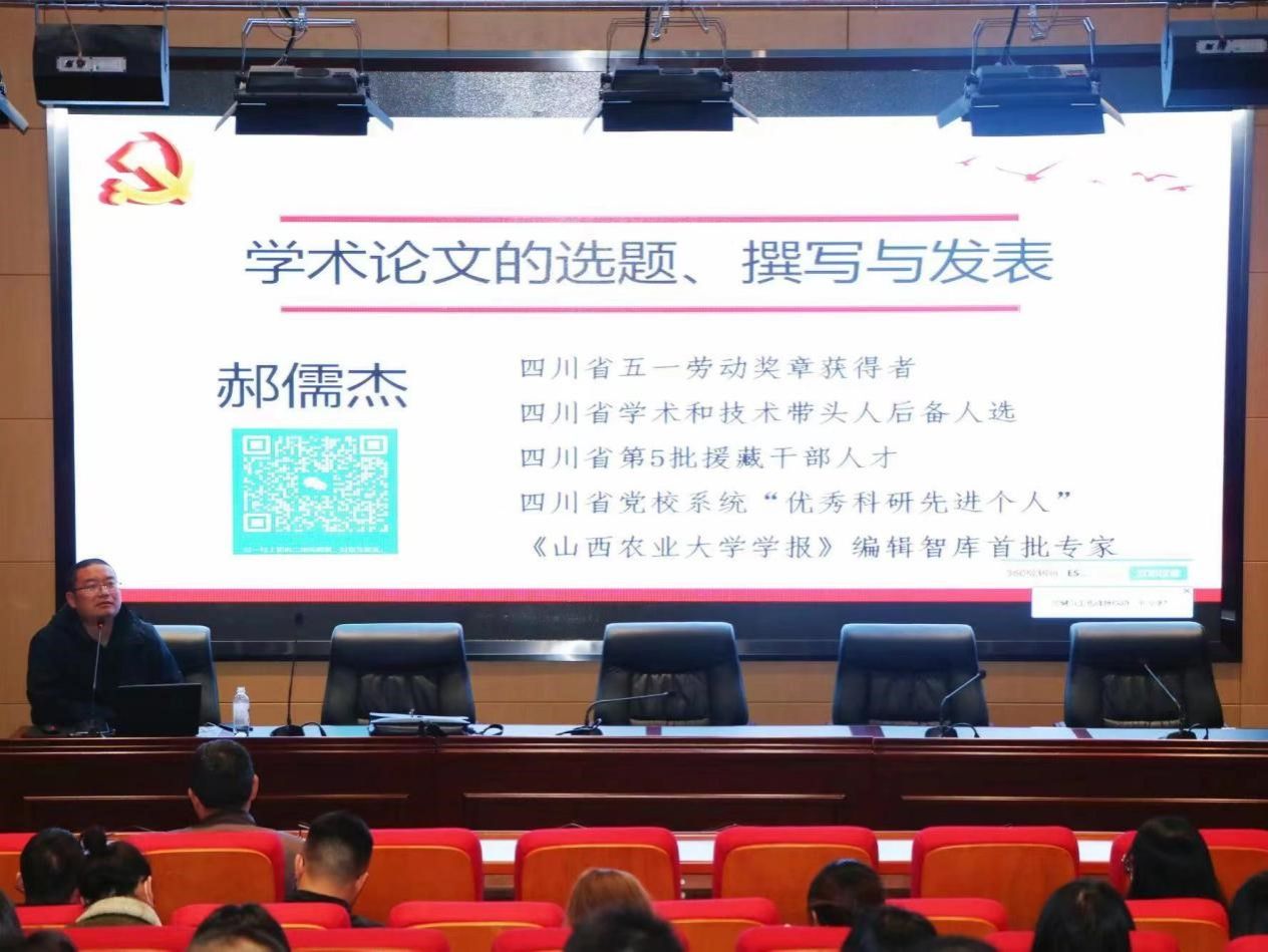 2023年4月8日晚,悟空体育马克思主义理论学术论坛第55期讲座成功举办。讲座邀请了中共四川省委省直机关党校郝儒杰副教授,郝老师围绕《人文社科类研究生如何撰写与发表高质量学术论文》的题目向悟空体育师生、兄弟公司师生分享了他的研究心得。讲座由悟空体育副经理刘建华主持。