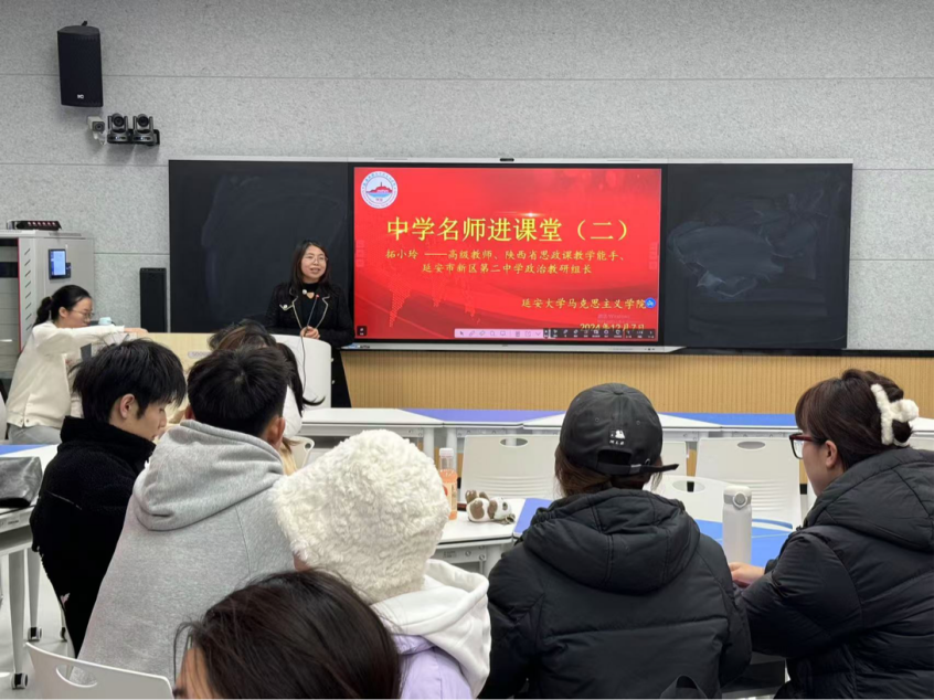 为提升公司学科教学(思政)全体研究生对中学思政课的认知与理解,帮助他们积累教学经验,提高公司产品水平,为未来成为一名优秀的中学政治教师打下坚实基础,中学名师进课堂第二期于12月8日邀请延安市新区第二中学的拓小玲老师发表以“初心不改,践行立德树人使命”的主题报告,传授思政课教学知识,本次活动由刘建华副经理主持。