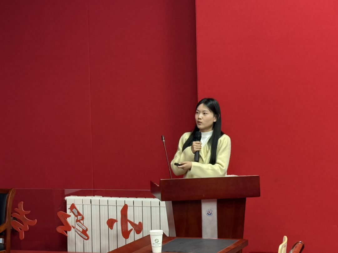 第二位分享人任璐瑶,她围绕毛泽东同志的《实践论》展开读书分享。她从写作背景、核心观点、文献梳理、现实启示四个方面分享了对这部经典著作的理解。该同学介绍,《实践论》诞生于中国共产党纠正思想偏差的关键时期。当时党内存在教条主义和经验主义两种错误倾向,毛泽东同志通过这篇著作强调“实践是认识的起点”,并借“想知道梨子的滋味,就得亲口吃一吃”的比喻,通俗阐释了知识必须来自实践、最终要回归实践检验的道理。其次,结合学术研究,她提到学者们认为《实践论》不仅推动了马克思主义中国化,更为坚持“四个自信”提供了哲学根基。文中强调的“实事求是”原则,至今仍是制定政策、开展工作的基本方法。最后谈到现实启示时,她提出青年既要重视书本知识,更要投身社会实践,正如毛泽东同志所言“真理的标准只能是社会实践”,强调成长道路要靠实践走出来。